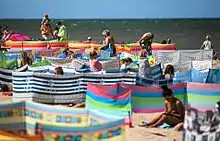 Пляжні ширми, призначені для захисту відпочивальників на пляжі від вітру й Сонця, зазвичай називаються параванами (від фр. paravent). Вони являють собою екран з шматка тканини шириною від 70 до 90 сантиметрів і довжиною від 4 до 12 метрів, укріплений на дерев'яних кілках, устромлених у пісок пляжу.