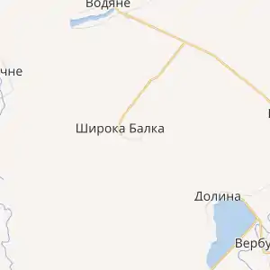 Село Широка Балка знаходиться на відстані 3 км від сіл Водяне, Зарічне і Долина. Селом тече пересихаюча балка Широка.