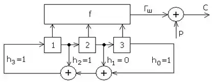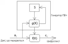 Нехай - внутрішній стан ГПВЧ, - функція перетворення стану, - функція шифрування.