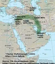 Числа показують відсоток шиїтів