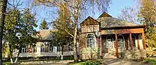 | «…під час революції 1905—1907 pp., коли взагалі у суспільстві посилюються демократичні тенденції, Олена Пчілка подала думку щодо необхідності споруджувати сільські школи в архітектурних формах народного стилю…» | ||