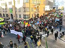- En Suisse, l’heure de l’urgence climatique a sonné. Le Temps (фр.). 18 січня 2019. «Ce mouvement d’ampleur nationale a vu 22 000 gymnasiens, apprentis et étudiants crier à l’urgence climatique dans les rues de Lausanne, Fribourg ou Saint-Gall au lieu d’aller en classe. [This nationwide movement saw 22000 high-schoolers, apprentices and students shouting at the climatic emergency in the streets of Lausanne, Friborg or St. Gallen instead of going to class.]»