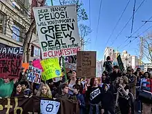 15 березня 2019 року шкільні страйки, які закликали дорослих взяти на себе відповідальність і зупинити зміну клімату, почали відбуватися у більш ніж 2000 містах по всьому світу. За винятком Антарктиди, де немає шкіл,[28] за оцінками, у заходах взяли участь 1,4 млн. учнів з усього світу.[29] [30] [31] У Антарктиці принаймні сім вчених провели підтримку мітингу на Неймайєрському вокзалі III Інституту Альфреда Вегенера.[32] [33] [34]