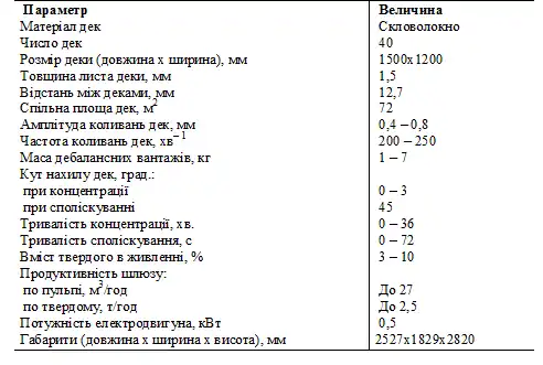 Шлюз складається з двох пакетів (по 20 шт.) паралельних гладких дек розміром 1,5×1,2 м, виготовлених зі скловолокна і поліефірних смол. Деки розташовані на невеликій відстані одна від одної і в робочому положенні нахилені під кутом до 3º до горизонту. Декам надають орбітальних коливань у своїй площині під дією дебалансного вібратора, який розташований між пакетами. Кругові коливання дек з похилим потоком сприяють кращому і більш селективному просуванню зерен в потоці: рух важких осілих зерен сповільнюється, що сприяє змиву легких зерен.