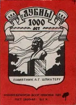 1988 року було випущено серію з восьми сірникових етикеток, присвячену 1000-річчю міста Лубни. На одній з етикеток було зображено пам'ятник Шліхтеру [3].