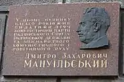 Меморіальна дошка Дмитру Мануїльському (демонтована)