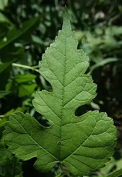 Шовковиця червона (Morus rubra) — невелике листопадне дерево родини тутові, висотою до 20 метрів, з коричнево-бурою корою, шатроподібною кроною та з серцеподібним листям, батьківщина Північна Америка[1].