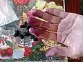 З ягід витискають сік. До нього додають у борошно з яйцем, трохи цукру, меду та вершкового масла. Добре вимішують тісто та випікають з нього нетовстий корж. Готовий виріб — темного кольору. Страву можна їсти як свіжоспечену, так і черству, бо тоді це різновид пряників.