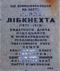 Анотаційна дошка на честь Карла Лібкнехта на будинку № 52/23 (демонтовано 2016 року)