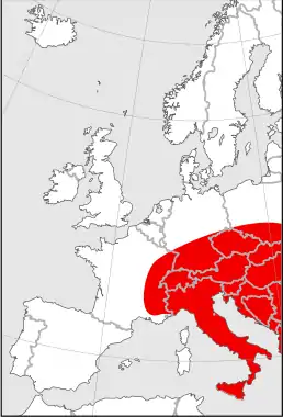 Центральна, частково східна та південна Європа, південна частина західного Сибіру та північний Казахстан.