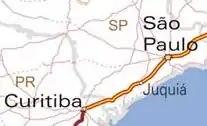 | кінець | Межа між Ріу-Негру, PR і Мафра, SC |