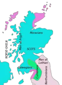 Першими носіями кельтських мов на цій території були брити, що населяли південну, здебільшого рівнинну частину Шотландії. Ними був заснований також й Единбург — нинішня столиця Шотландії. Саме на території цієї країни було створено першу писемну пам'ятку кельтських мов — поему «Гододін», автором якої був Анейрін. Бритське населення в Шотландії протрималось на півдні до 6 століття, далі почався наступ з півдня з боку англосаксів та заходу — ірландського населення, здебільшого вихідців із королівства Дал Ріада, на півострові Ольстер. Переселення ірландців до Британії почалося ще у IV століття, проте якщо їхні поселення в Уельсі не збереглися, то в Шотландії та на острові Мен вони стали основним населенням. Острів Йона, розташований на південному заході від берегів Шотландії став одним із духовних і релігійних центрів монастирського життя, тут знаходився монастир, пов'язаний із ім'ям святого Колумби.