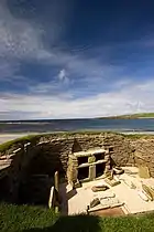 Групи поселенців почали будувати перші постійні житла на шотландській землі близько 9 500 років тому, а перші села — близько 6 000 років тому. Зокрема, цим періодом датують добре збережене поселення Скара-Брей на острові Мейнленд Оркнейського архіпелагу. Неолітичні поселення, поховання та ритуальні місця добре відомі та чудово збереглися на Північних та Західних островах Шотландії, позаяк відсутність лісів змушували людей того часу зводити житла з місцевого каменю[22].