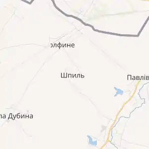 Село Шпиль розташоване на відстані 2.5 км від правого берега річки Павлівка. За 1 км розташоване село Волфине.