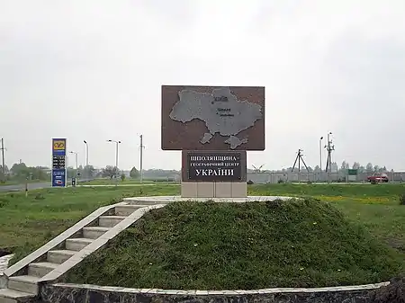 24 серпня 2004 року при в'їзді в м. Шполу урочисто відкрито пам'ятний знак, який символізував географічний центр території України, і який замінено на інший у травні 2008 року.