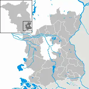 Район складається з п'яти самостійних міст, трьох самостійних громад, а також двох міст і 19 громад (нім. Gemeinden), об'єднаних у три об'єднання громад (нім. Ämter).