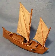 Готландський човен з двома шпринтовими вітрилами, топселем і стакселем