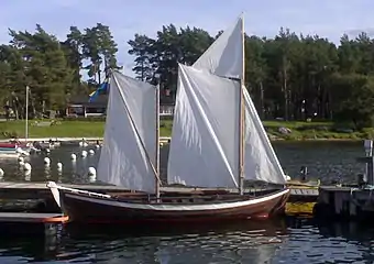 Фінський рибальський човен з трьома шпринтовими вітрилами