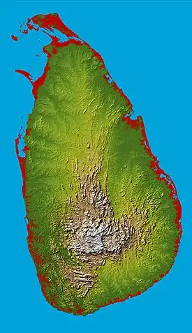 Рівнина на півночі і по узбережжю, гори на півдні й у центральній частині. У рельєфі острова виражена серія різновисотних ступенів — від прибережних низовин до Центрального гірського масиву, розташованого на півдні центральної частини острова. Територія, піднята вище 1500 м над поверхнею моря, розсічена розломами. Один з них у цілому складається з розрізнених ланок і має меридіанальну орієнтацію; інший має дугоподібну форму і широтне розташування. В цілому вони схожі на якір, стрижень якого витягнутий з півночі на південь. Найвищі точки гора Підуруталагала (2524 м), пік Адама — 2243 м.
