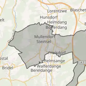 ![]() Комуна Штайнсель (помаранчевий), кантон Люксембург (темно-червоний) та округ Люксембург (темно-сірий) на карті Люксембургу | ||||