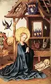 Фрагмент триптиха, права стулка відповідає лівій стулці, яка зберігається в Лісабоні Внутрішня сторона, Поклоніння немовляті Ісусу[17] |