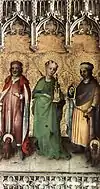 Вівтар чотирьох отців церкви, ліва стулка[13] Внутрішня сторона, Святі Матвій, Катерина Олександрійська, Іван Хреститель зовнішня сторона, Святий Ієронім, мученик та святий Георгій з донатором[14] |