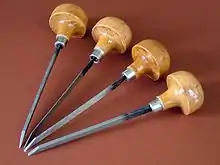 - болштихель (радіусний), використовується для чистового оброблення та нанесення написів;