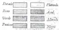 Сам Коломб'єр стверджував, що Петра Санкта просто скопіював його систему без всяких змін, але точно така ж система (за винятком відсутності штрихування для пурпуру) зустрічається і в більш ранній роботі Петра Санкти, що відноситься до 1634 року[4].