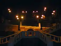 Сходи оздоблені кованим та кам'яним поруччям і канделябрами. Деякі частини сходів пофарбовані в зелене, хоча первинно були синього кольору. Оригінальні скляні кулі світильників у 2009 році було замінено на копії.