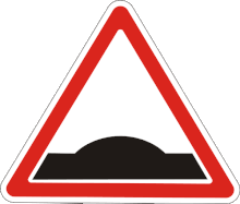 Перед штучними дорожніми нерівностями, зокрема лежачими поліцейськими, часто встановлюють попереджувальний дорожній знак 1.11 «Пагорб».