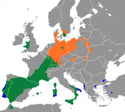 Гніздовий ареал охоплює Європу, Північний Іран, острови Середземного моря, Малу Азію, Північно-західна Африку, Канарські острови і острови Зеленого мису. На північ Європи доходить до північного краю Скандинавського півострова. На сході межа ареалу проходить через Латвію, Білорусь, Україну.