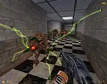 У 1998 році новачком ігрової індустрії «Valve Corporation» було випущено Half-Life. Half-Life є шутером від першої особи, що вимагає від гравця виконання бойових завдань і головоломок для просування сюжетом. На противагу більшості шутерів від першої особи свого часу, історія Half-Life показується повністю за допомогою скриптових послідовностей, зберігаючи контроль гравця над персонажем (інколи він обмежений за сюжетом) і можливість бачити «його очима». Half-Life не має окремих рівнів; замість цього гра поділена на глави, в яких майже всі локації безперервно пов'язані між собою. Тобто, гравець завжди на власні очі бачить як переходить з однієї в іншу. Гра регулярно пропонує вирішувати головоломки, такі як переміщення лабіринтом конвеєрних стрічок, або складання ящиків для досягнення виходу.