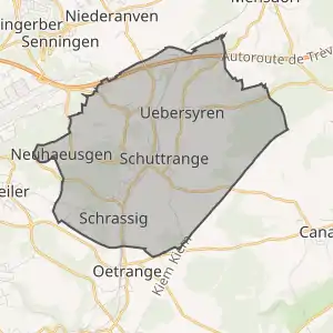 ![]() Комуна Шуттранж (помаранчевий), кантон Люксембург (темно-червоний) та округ Люксембург (темно-сірий) на карті Люксембургу | ||||