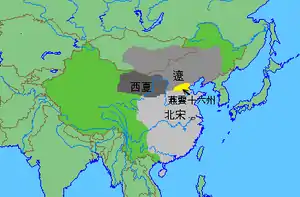 907 року в Китаї припинила своє існування імперія Тан і розпочався період п'яти династій і десяти держав. На додачу до міжусобної боротьби, з півночі почали наступати кидані, а з заходу — тюрки-шато. За допомоги тюрків 923 року виникла держава Пізня Тан, однак 936 року кидані підтримали Ші Цзінтана, який підбурив повстання та заснував державу Пізня Цзінь. В обмін на підтримку в боротьбі Ші Цзінтан був змушений передати киданській імперії Ляо 16 округів, що відокремлювали традиційні китайські регіони від степової півночі.