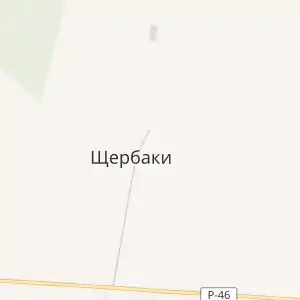 Село Щербаки знаходиться за 2 км від річки Рябина (лівий берег). За 2 км на північ розташовується село Дмитрівка. Біля села невеликий лісовий масив. Поруч проходить автомобільна дорога Р46.