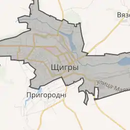 Місто розташоване на річці Щигор, за 61 км на північний схід від Курська.