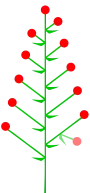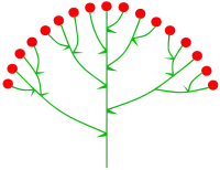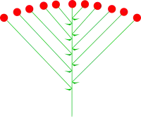 Порівняльні схеми різних суцвіть (зліва направо): 1) китиця; 2) зонтик; 3) простий щиток; 4) складний щиток. | ||||||||||