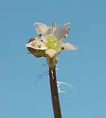 Китиця мало-, одноквіткова на тонкому стеблі, вдвічі коротшому за черешок відповідного листка. Квітки з п'ятьма білими пелюстками з червонуватим відтінком, 0,50–0,75 мм в діаметрі.