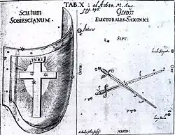 - Сузір'я Щита в «Уранографії» Гевелія. Дзеркально обернене зображення (захід ліворуч).