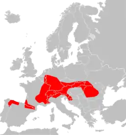 Країни поширення: Андорра, Австрія, Хорватія, Чехія, Франція, Угорщина, Німеччина, Італія, Польща, Португалія, Румунія, Словаччина, Словенія, Іспанія, Швейцарія, Україна. В основному обмежується височинами, де будує великі підземні нори на луках (зокрема пасовища) або, рідше, в лісах, від рівня моря до альпійських луків 2400 метрів.