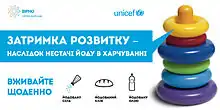 На сьогодні ліквідація захворювань, спричинених дефіцитом йоду[12], яка має вирішуватись через найбільш ефективний метод — впровадження універсального йодування солі — залишається актуальною проблемою в Україні. А рівень виключного грудного вигодовування в Україні становить лише 18 % і залишається одним з найнижчих в регіоні. В Україні немає національних стандартів розвитку дитини, якісних стандартів навчання батьків або стандартів надання комплексних базових послуг дітям.