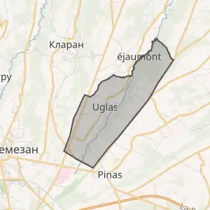 - Розташування муніципалітету Юглас на мапі Франції та сусідні муніципалітети
