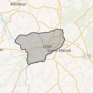 Муніципалітет розташований на відстані[2] близько 390 км на захід від Парижа, 90 км на захід від Ренна, 27 км на південь від Сен-Бріє.