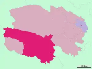 | Повіт | Нангчен | 囊谦县 | ནང་ཆེན་རྫོང་། | 85 825 |
