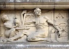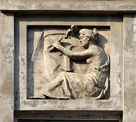- Неокласицистичні горельєфи на фасаді Австро-угорського банку на вулиці Листопадового чину у Львові (1912).[8]