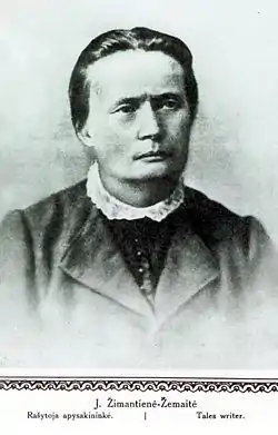 З безземельних дворян. З 1864 служила у поміщиків нянею і покоївкою. В 1865 вийшла заміж за Лаурінаса Жімантаса, колишнього кріпака. Близько тридцяти років разом з чоловіком займалася сільським господарством. Під впливом Повіласа Вішинськіса написала першу розповідь «Сватання», яку було надруковано в литовському календарі «Tikrasis Lietuvos ukininku kalendorius» на 1895 рік. Видавці змінили назву розповіді на «Осінній вечір» і дали автору псевдонім Zemaite («Жемайтійка»).