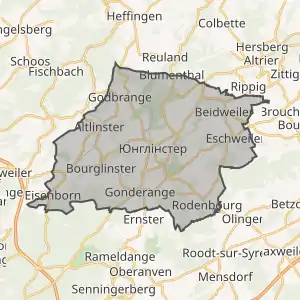 ![]() Комуна Юнглінстер (помаранчевий), кантон Гревенмахер (темно-червоний) та округ Гревенмахер (темно-сірий) на карті Люксембургу | ||||
