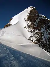 Остання секція підйому здійснюється по одному з найдовших та найвужчих льодовикових кряжів, які є в Альпах, за яким око падає на майже 1 км вниз до льодовика Ротталь на захід від Юнгфрау. Якщо людина має ідеальну стійкість в ногах, в неї відсутнє вертиго та вона взяла першокласного гіда, то небезпеки не має, якщо, звичайно, не дуже рано в сезоні або після важкого снігу (це місце мало найбільшу кількість нещасних випадків). Коли у фірні необхідно вирізати сходи, на підйом на триста метрів від Саттель до вершини можна витратити три години. Ближче до вершини деякі скелі виринають з-під снігу, але власне вершина є майже рівним кряжем замерзлого снігу, яким сповзає по боках наче дуже гостроверхий дах будинку.