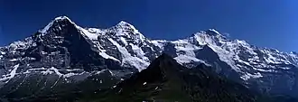 ![]() Вид на Юнгфрау з селища Мюррен | ||||
