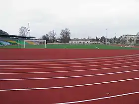 Вигляд на поле, легкоатлетичну доріжку та трибуни